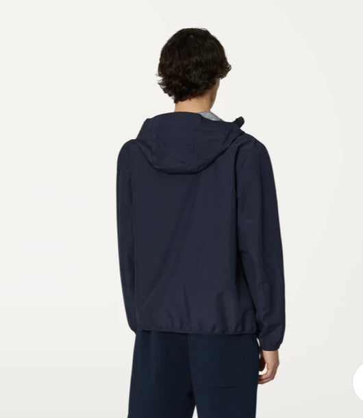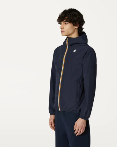 La giacca corta da uomo Jack ha vestibilità slim e un gusto urbano che interpreta moltissimi look. Il modello è particolarmente resistente alla pioggia perchè sopporta fino a 5000 colonne d'acqua. Il modello ha linea slim con collo alto e coulisse al cappuccio e al fondo per regolare la vestibilità. Realizzato in poliestere, si caratterizza per l'interno rifinito con una membrana isolante decorata con lettering K-Way stampato all over in tonalità argento.