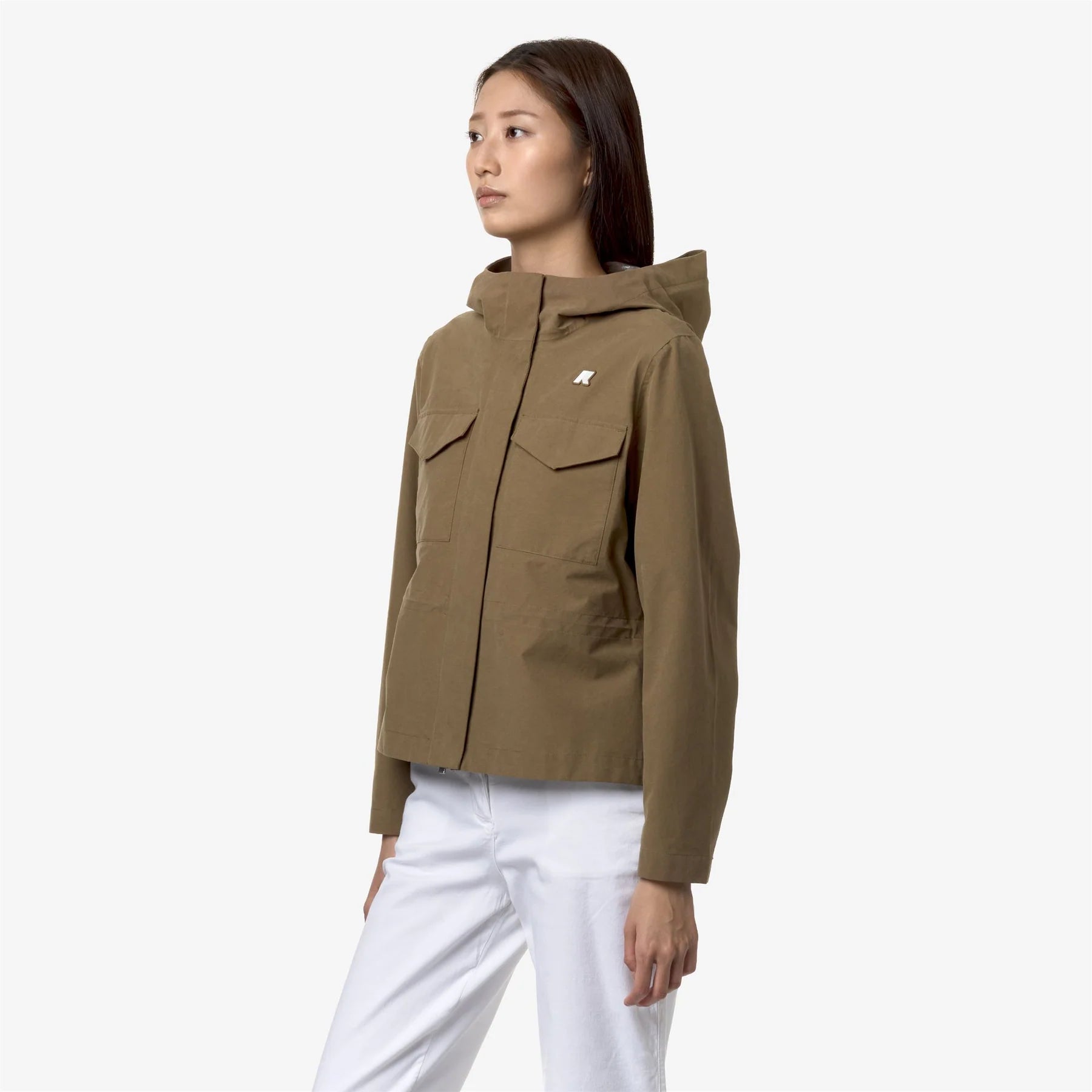 Ivette è una giacca corta dal design dinamico e femminile dal fit regular. dal fit regolare e dal design femminile, che segue delicatamente la silhouette grazie alla coulisse regolabile in vita. Realizzata in tessuto nylon/cotone manopesca che protegge dall'acqua fino a 5000 colonne, e dal vento, con un indice di traspirabilità pari a 5000. Il capo presenta cuciture termonastrate all’interno, cappuccio avvolgente e tasche con patta applicate. Il logo in silicone bianco aggiunge un dettaglio grafico elegante e minimal.